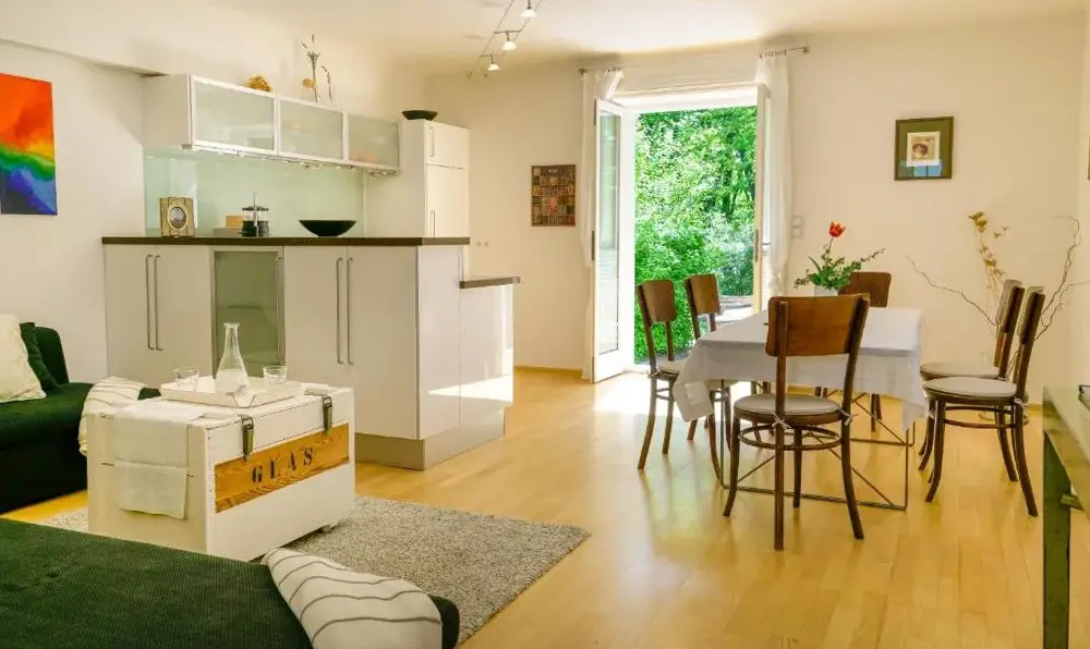 Located at Kirchengasse 18 in Schönau an der Triesting, Austria, Schloss Schönau offers a historic setting with self-catered options based on guest feedback. The estate features a serene pond surrounded by water lilies and sprawling parkland where guests have spotted deer and rabbits during their stays. Nearby amenities include cycling trails just steps away, making it ideal for outdoor enthusiasts looking to explore the area’s scenic routes. Within walking distance is a local inn (600 meters) serving regional fare, while cultural sites like Wasserschloss Kottingbrunn (2.1 kilometers) and Kaiserliche Villa (7 kilometers) provide historical insights into the region’s heritage. For families traveling together, spacious family rooms are available on-site along with complimentary parking nearby. Seasonal attractions range from skiing lifts approximately 22 kilometers north to Friedrichsbad Roman-Irish Baths (8 kilometers), offering relaxation after exploration.