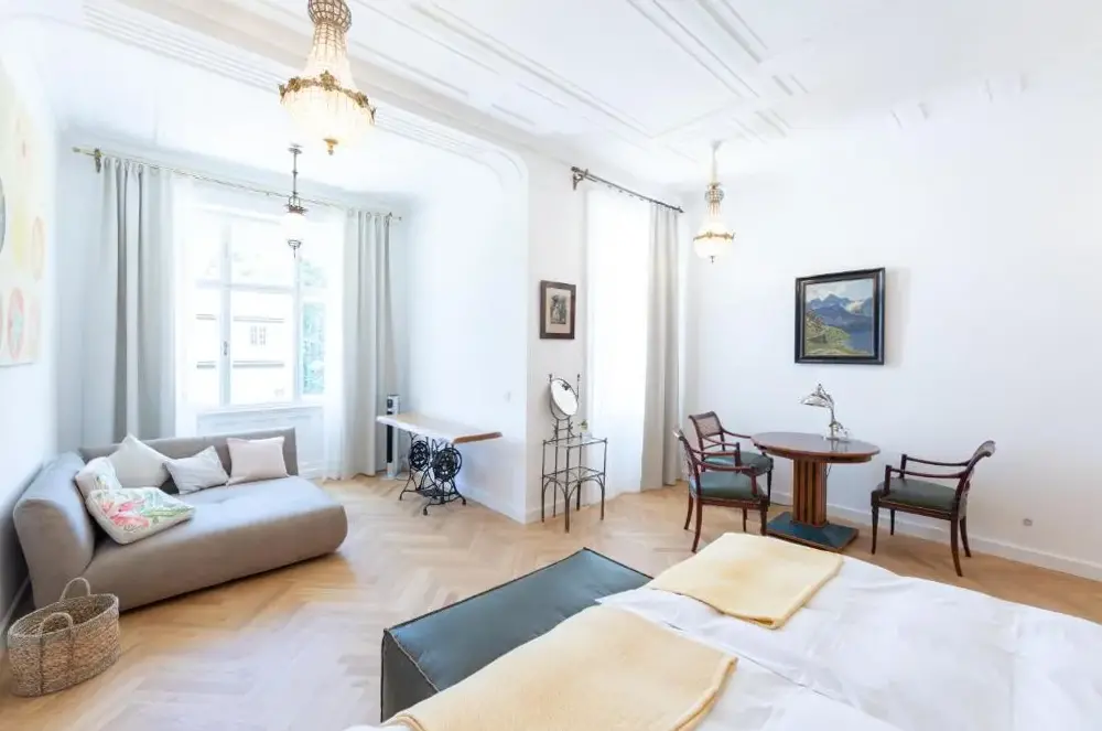 The castle -the most amazing we have ever seen- is located in a beautiful park. Our apartments were nicely furbished, cozy and very clean. We wish we could stay longer. Will definitely come back.